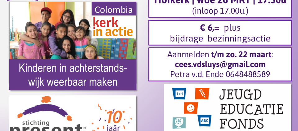 Woensdag 26 maart is er in de Hofkerk een Sobere maaltijd waar ook aandacht besteedt wordt aan de bezinningsdoelen. Deze maaltijd begint om 17.30u ( inloop 17.00u) Kosten zijn € 6,=  plus een  bijdrage voor de bezinningsactie. Aanmelden t/m zo. 22 maart: cees.vdsluys@gmail.com  of Petra v.d. Ende 0648488589