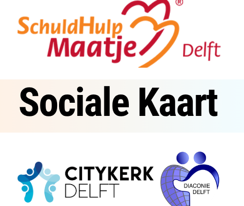 De oranje-rode kant is een korte versie van de sociale kaart van schuldhulpmaatje. Een uitgebreide sociale kaart staat op schuldhulpmaatjedelft.nl/sociale-kaart