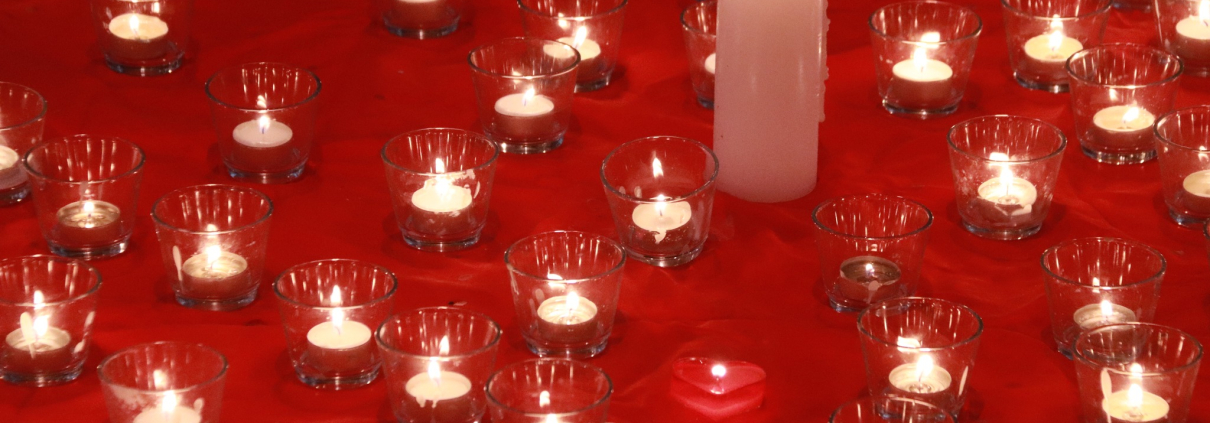 Terwijl het koor van Antilliaanse achtergrond Friends of Worship mooie liederen zong, werden er meer dan honderd kaarsen aangestoken, en raakte de schilderdoeken vol met namen van dierbaren die de aanwezigen wilden gedenken.