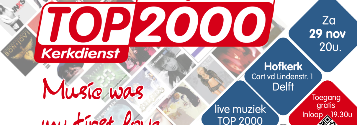 Op zaterdagavond 29 november ben je welkom in de Hofkerk (Cort van der Linderstraat 1) bij een TOP2000-dienst met als thema ‘Music was my first love’.