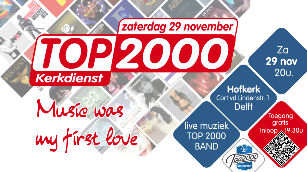 Op zaterdagavond 29 november ben je welkom in de Hofkerk (Cort van der Linderstraat 1) bij een TOP2000-dienst met als thema ‘Music was my first love’.